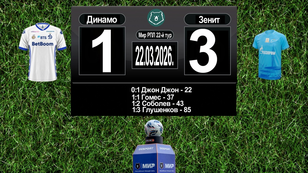 В то время как петербуржцы в последние минуты показали блестящее сочетание: Дркушич, Энрике и Барриос мастерски сыграли на правом фланге, затем Вильмар точно отдал мяч в штрафную, где Соболев в одно касание передал его Глушенкову, а тот мощным ударом с ходу поразил дальнюю «девятку» – 1:3.