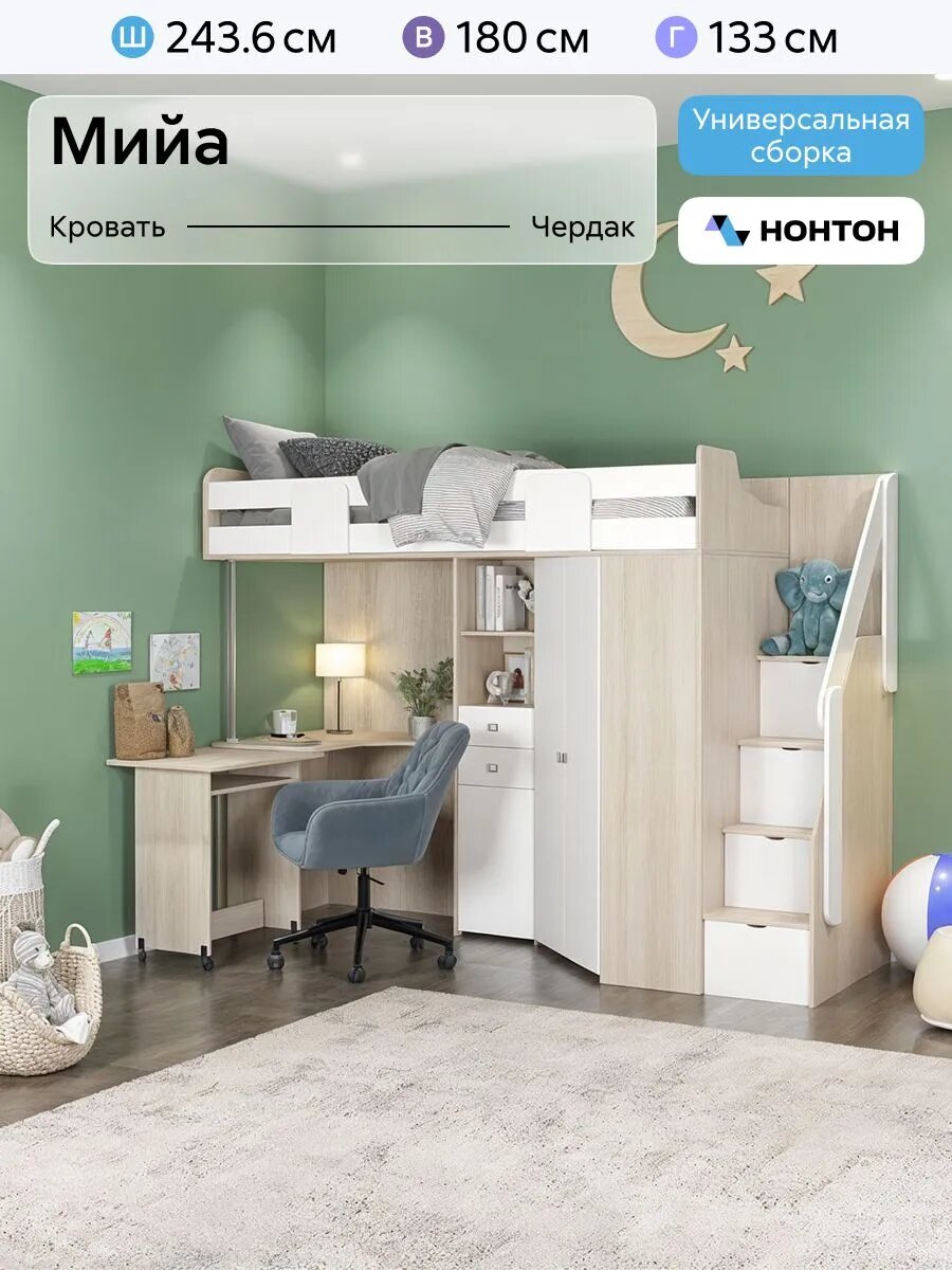 Нужно разместить спальное место, зону для учёбы, хранение одежды и игрушек — и при этом оставить пространство для игр. Особенно остро эта задача стоит в малогабаритных квартирах. Сегодня разбираю два решения, которые сейчас доступны с отличными скидками. Первое — компактная кровать-чердак. Второе — полноценный мебельный комплекс, где уже есть всё. Кровать-чердак — это классика для детских комнат с ограниченным пространством. Спальное место находится наверху, а нижняя зона остаётся свободной: там можно разместить диванчик, игровой коврик, письменный стол или даже небольшой шкаф. Технические детали: Важные нюансы: