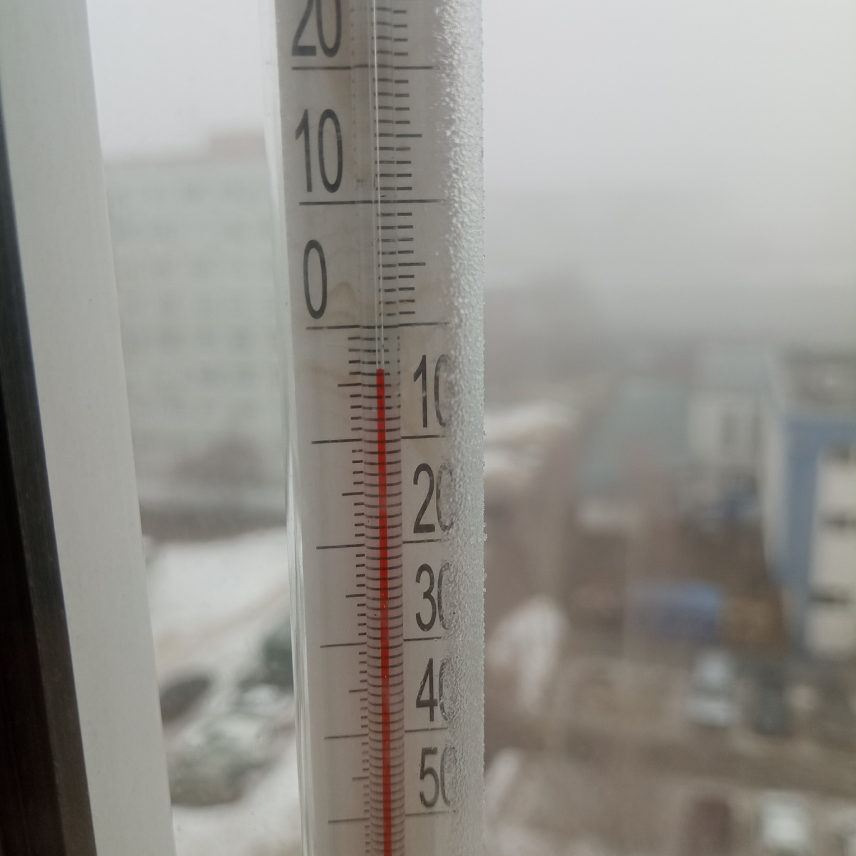 Потом, как всегда, обход растений. На улице холодно, который день туман и иней на деревьях. Форточку не открываю. Вот такой туман и мороз в 07.30.