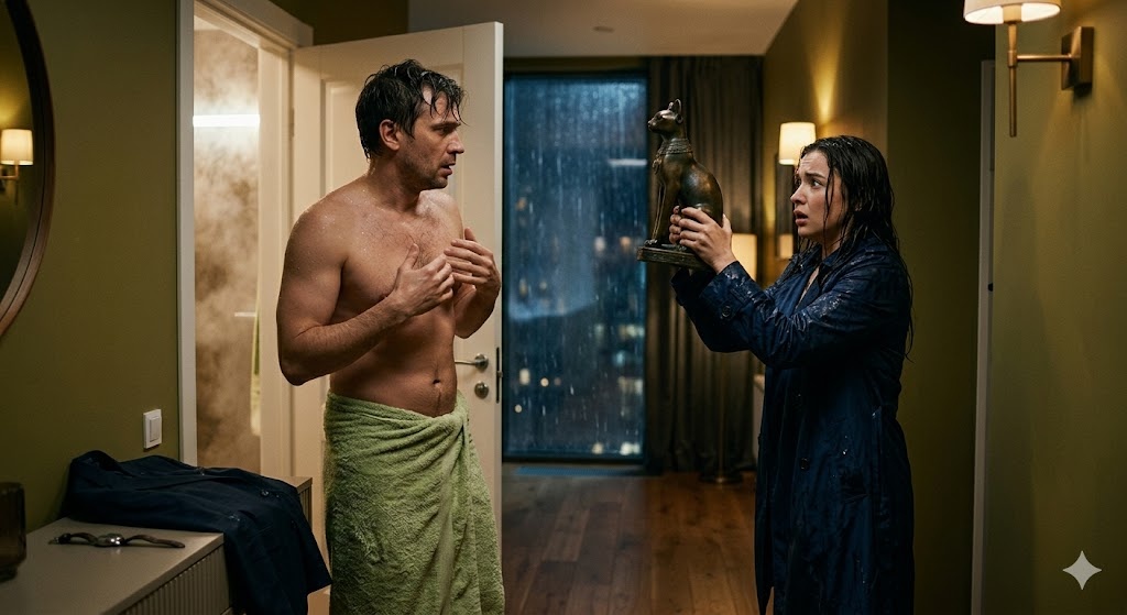 Паника ледяной волной окатила меня с ног до головы. Я схватила первое, что попалось под руку — тяжелую бронзовую статуэтку в виде кошки, подарок мамы, — и на негнущихся ногах двинулась к ванной.
