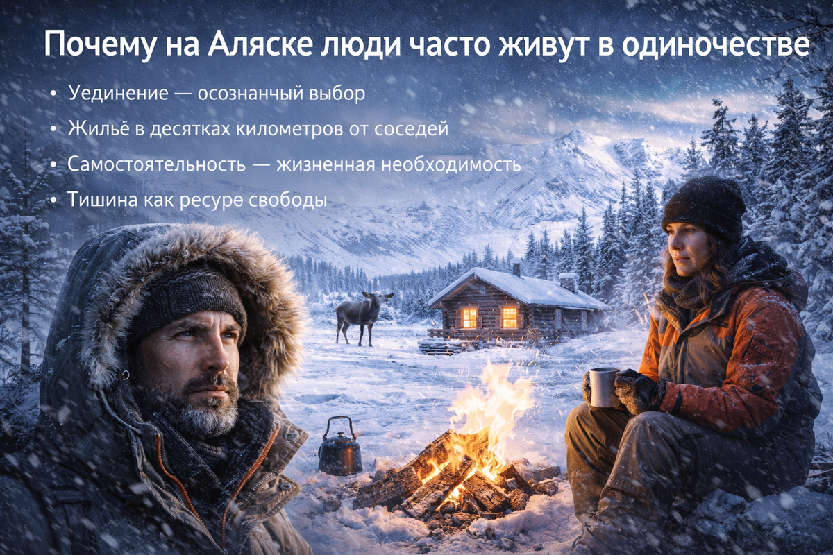 На Аляске есть дома, до которых нельзя дойти пешком от соседей — потому что ближайший человек может жить в десятках километров. Там нет улицы с домами, нет привычного двора, нет даже ощущения, что рядом есть кто-то ещё. И самое неожиданное — многие выбирают такую жизнь осознанно. Пространство здесь измеряется иначе Аляска огромная. Настолько, что привычные расстояния просто перестают работать. В обычном городе 5–10 километров — это расстояние, которое можно проехать за полчаса. На Аляске это может означать полную изоляцию. Потому что между точками нет дорог, нет транспорта, а иногда и смысла строить связь. Есть районы, где: И это не исключение, а нормальная картина. Одиночество здесь не всегда проблема Важно понять главное: для многих это не вынужденная мера. Люди приезжают на Аляску именно за этим: В мире, где всё перегружено шумом, информацией и людьми, такая изоляция начинает восприниматься не как минус, а как редкий ресурс. Причины, по которым люди выбирают одиночество У каждого св
