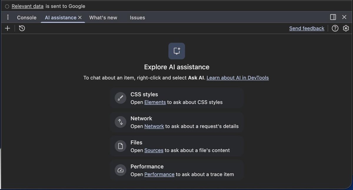 Сегодня сидел писал веб-сервис, понадобилось залезть в консоль посмотреть ошибки, и я совершенно случайно наткнулся на одну просто гениальную вещь. Уверен, многие тоже не в курсе, потому что Google спрятали её в дебрях настроек! Если вы иногда не понимаете, что за ад происходит в консоли разработчика, или не можете отловить хитрый баг, Chrome спешит на помощь. Они внедрили мощного ИИ-ассистента прямо в DevTools. 🫣 Как это работает: Написал сайт ➡️ вылезли баги ➡️ ИИ (под капотом там Gemini) тут же выдает тебе аналитику проблемы и предлагает конкретный код для ее решения. 💻 Самый главный кайф: больше не надо никуда ничего копировать, пересылать и вставлять в отдельные окна чат-ботов. Ассистент понимает контекст того, где ты находишься. Ты можешь спросить его про конкретную ошибку в консоли, кусок CSS-стилей, зависший сетевой запрос (Network) или проблемы с производительностью — он анализирует нужные данные прямо на месте. ◻️ Когда это появилось? Оказывается, фичу раскатывали пост