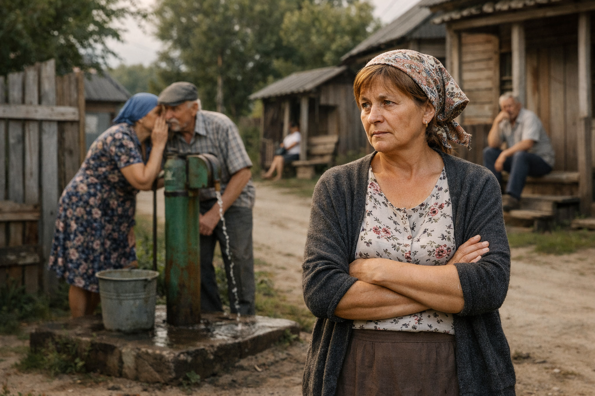 Вот так это и происходит. Сначала две бабы у колонки. Потом переулок. Потом магазин. Потом дальняя родня. Потом твоя дочь, которая живёт в городе и давно уже должна была вырасти из этого всего, всё равно звонит с чужим стыдом в голосе.