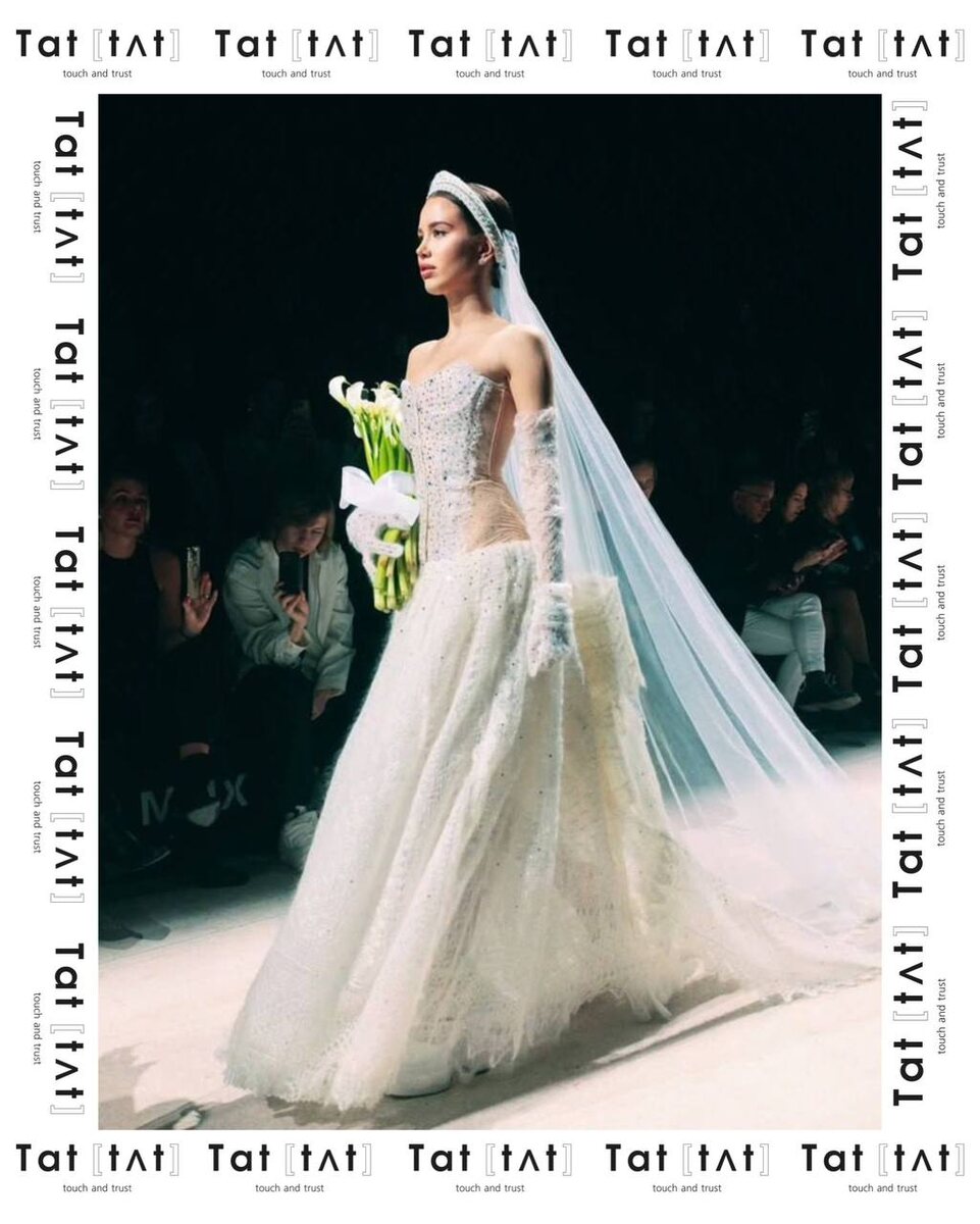Новая звездочка шоубиза Аврора Киба на подиуме показа Solangel на Московской Неделе моды. Блистательное белое платье могло бы стать тем самым свадебным, но стало просто предметом коллекции.