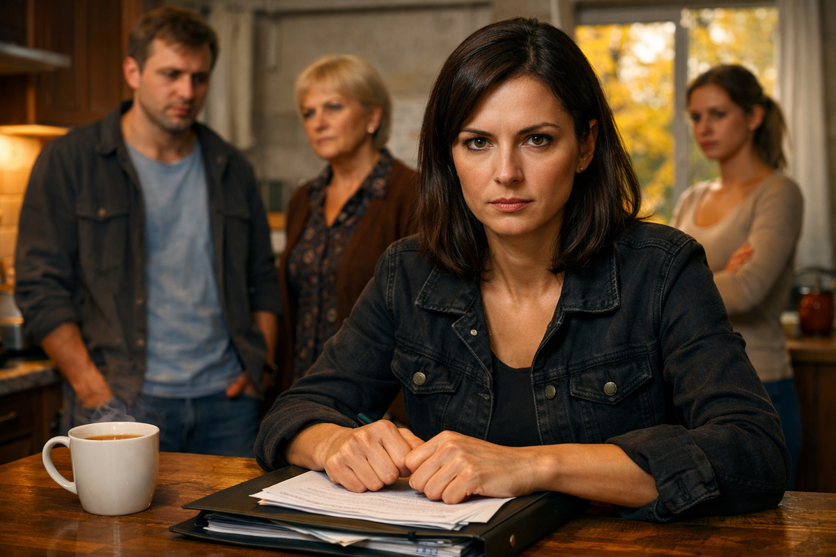 Она стояла у стены, прижимая к груди папку с документами, и слушала, как люди, с которыми она прожила почти десять лет, обсуждают ее как уже решенный вопрос. Не женщину. Не хозяйку квартиры. Не бывшую жену, которая еще вчера мыла полы после их совместной жизни и складывала его забытые носки в пакет. Просто препятствие, которое по счастливой случайности оказалось не бойким.