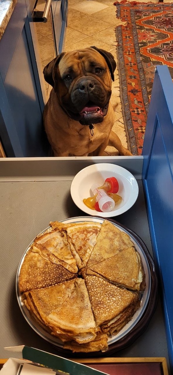 Так быть не может. Потому что не может быть. Это ж уму непостижимо. Тем более моему, Жанниному. Ты чего это удумала? Ты чё реально будешь вот это есть сама?!!!! Вот прямо без меня?! Ты одна?! Нет-нет-нет. Это невозможно. Ну так просто невозможно! Ты что думаешь, это для тебя Майя приезжала и готовила эту красоту? Да, тебя вообще дома не было! Ты вообще тут не бываешь! Это гости все к нам приезжают, и нам готовят, а мы их встречаем и обнимаем! А ты это... Не мельтеши под ногами. Давай уже ... Иди там на коврике в коридоре полежи, мы тебе принесем чего-нибудь, если у нас что останется. Мы не жадные. #Жанна_бульмастиф