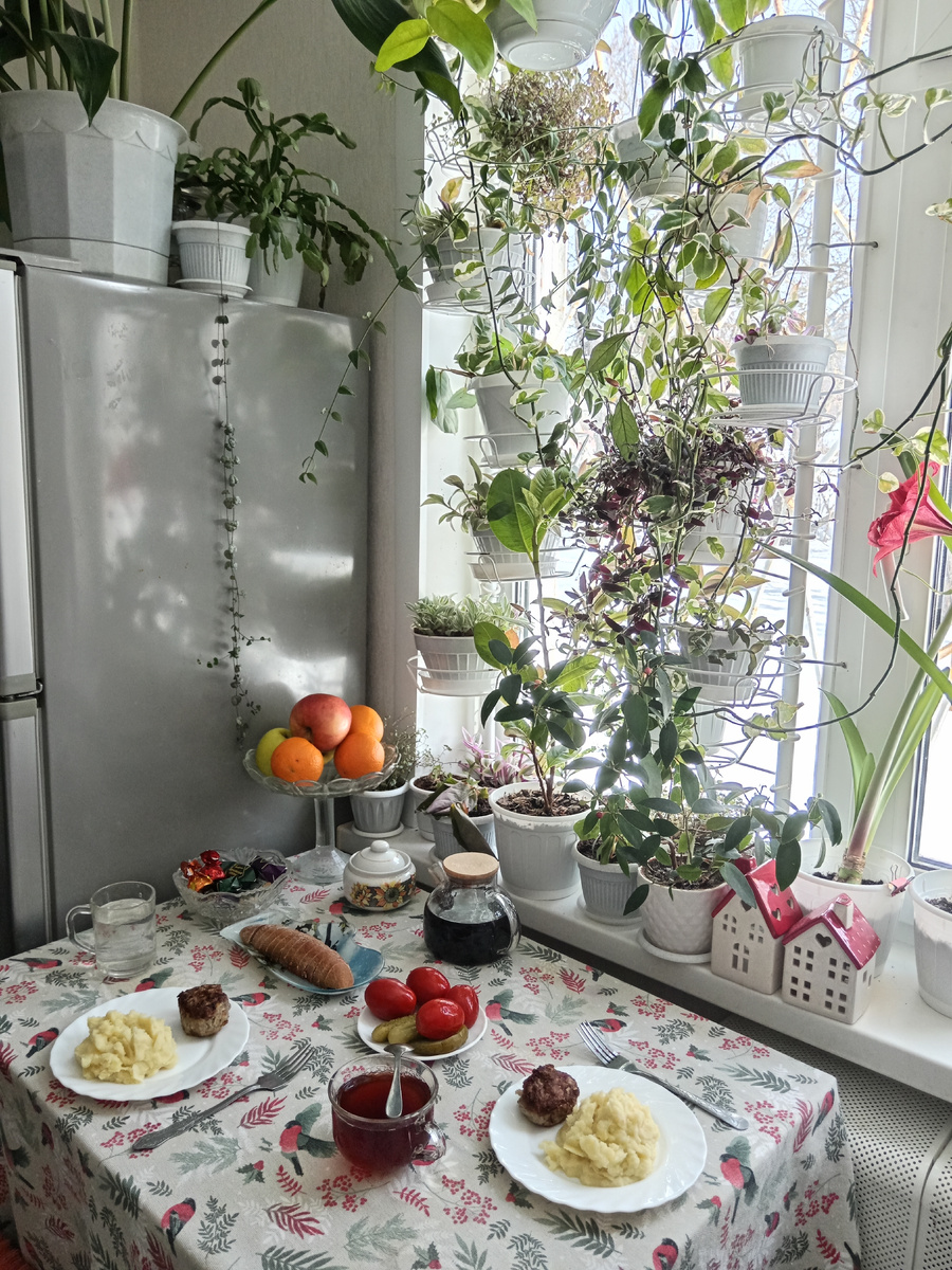 Вчера легла поздно. Уже около двух часов. Сегодня поздно проснулась. Уже около десяти часов. 0 С температура воздуха на улице. Сын ещё спит. Каникулы. И даже к репетитору идти не нужно. Обещала к концу недели позаниматься. Пока чайник пыхтел и сопел, читала и отвечала на комментарии читателей. Моя одноклассница М. с именем как из мексиканского сериала - это Марианна. В детстве называли Марьяна, Марьянка, Марьяночка. Но полное имя Марианна. Довольно необычное имя для средней полосы России, тем более в советский период. Марианна очень любила работать на пришкольном огороде, в несколько раз перерабытывая положенные часы. Пришкольным огородом у нас руководила семейная чета учителей биологии. И Марьяна была любимой ученицей учительницы биологии. Расспрашивала про каждое растение и каждую букашку. Каждую переменку бежала в любимый кабинет биологии. Кабинет биологии в нашей школе утопал в цветах. С высоты прожитых лет понимаю, что это была зелёная сокровищница. Разнообразие видов бегоний