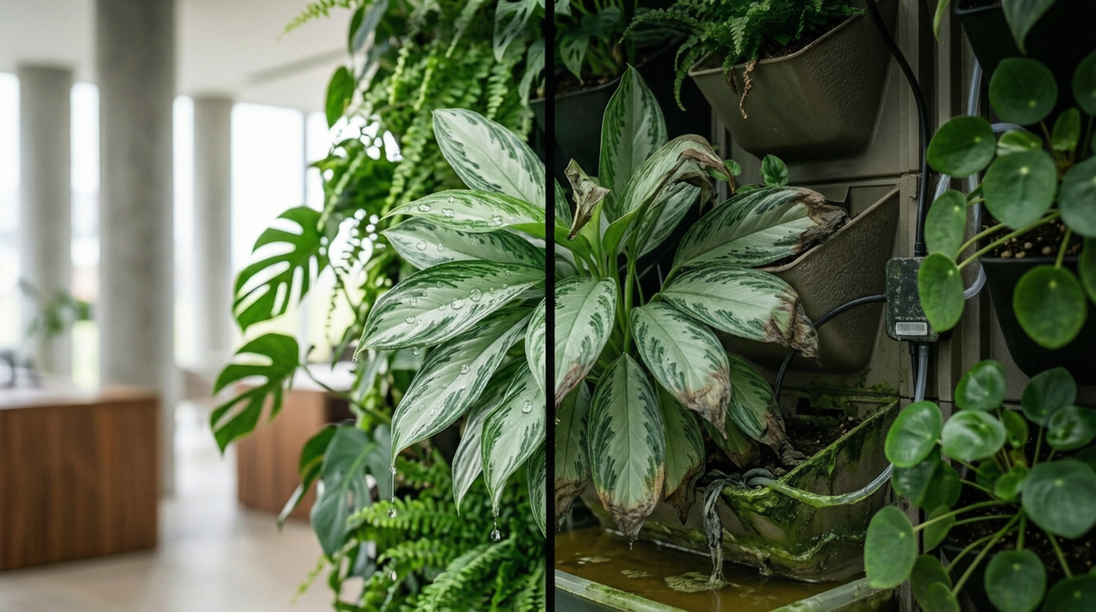 Вам обещают «альпийскую свежесть» и офис как у Google, но через три месяца интерьер начинает пахнуть как подгнивающее болото, а по переговорной летает рой насекомых. Это не «неудачное стечение обстоятельств», а закономерный итог экономии на инженерном фитодизайне. Пока менеджеры рисуют красивые рендеры, я, как инженер-практик, разберу три «грязных» секрета индустрии, которые всплывают сразу после того, как вы подписали акт приемки. Проблема не в «плохих цветах», а в анаэробных процессах внутри модулей. Если ваша стена пахнет прелой органикой — она гниет. Вы планировали биофильный дизайн, а получили инкубатор для мошек. Грибные комарики в офисе — это фиаско репутации. Белый или черный налет на модулях — это не «соль выступила», как любят говорить монтажники. Это грибок, который уже ест вашу несущую стену. В 2026 году вертикальное озеленение — это на 80% инженерия и на 20% ботаника. Если при продаже с вами не обсуждают кратность воздухообмена, химический состав субстрата и защиту от конд