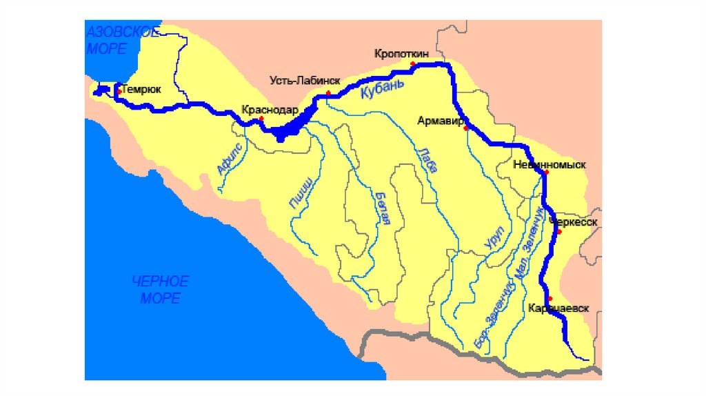 Усть-Лабинск - устье реки Лаба. Лаба - левый приток реки Кубань. Длина 214 км, а вместе с Большой Лабой (есть ещё и Малая Лаба) - 347 км. Собственно сама Лаба образуется при слиянии Большой и Малой Лабы. Обе истотные реки образуются ледников северного склона Главного Кавказского хребта. Большая Лаба по карте почти "подкрадывается" до Абхазии (с другой стороны гор). Помимо Усть-Лабинска есть ещё город Лабинск. Лаба протекает по Карачаево-Черкессии, Краснодарскому краю и по кромке с Адыгеей.