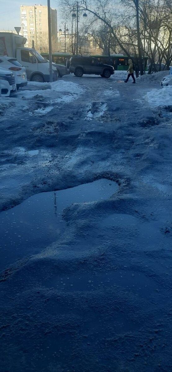 У дома платные парковки сделали из-за этого двор забитый. Снег во дворе ук содружество м не убирают. Где жителям ставить свой машины? Мешки с мусором с осеньи лежат, и это главная улица города.»