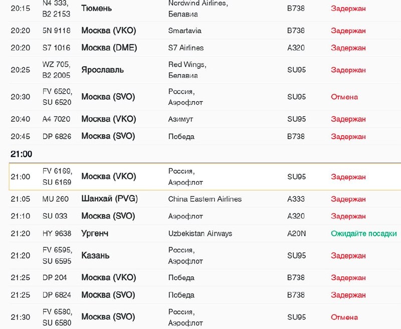 Десятки рейсов отменены и задержаны сегодня вечером на вылет в аэропорту Пулково