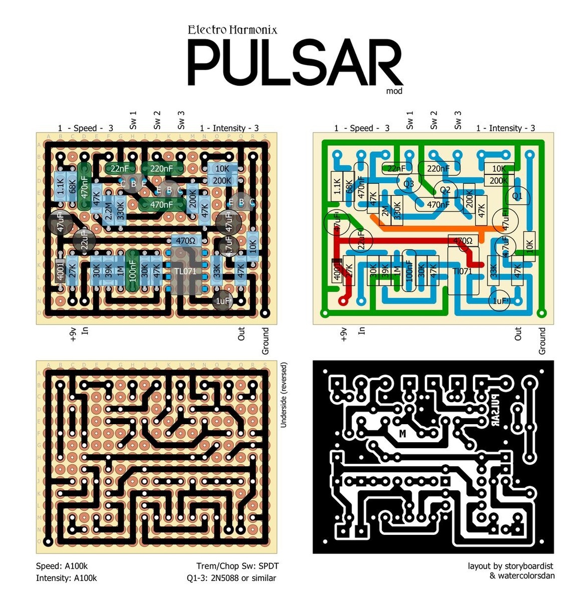 · Оригинальный Pulsar (большой корпус). Классическая версия 90-х в большом прямоугольном корпусе с четырьмя ручками (Rate, Depth, Waveform, Shape). Имеет более "винтажный" характер.