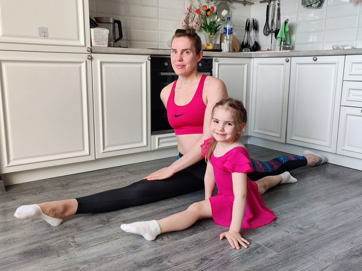 Вообще, моя теория о гибкости у детей на Анфисе плохо работает. Я работала с детьми на пилоне и видела, как они умеют терпеть и заворачиваться в калачи. С Анфисой я вообще не могу заниматься самостоятельно, она не воспринимает меня как тренера, хнычет и просит сразу же отпустить.