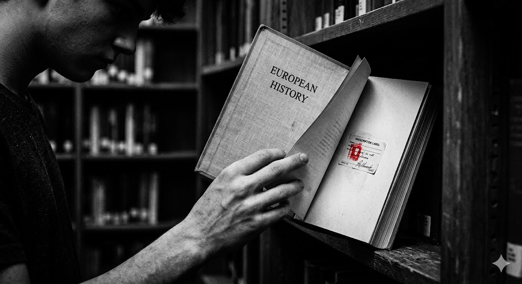 Открыв взятую на дом книгу о средневековой Европе, я увидел на одной из страниц намертво приклеенный белый стикер. Я присмотрелся.