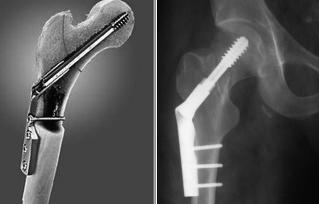 Завершающим этапом на бедре было вкручивание внутренней части стержня в большой вертел таким образом, чтобы всю резьбовая часть оказалась проксимальнее его ростковой зоны. Выстоящая часть внутреннего элемента скусывалась насколько можно короче. Рана для остеотомии промывалась и послойно ушивалась.