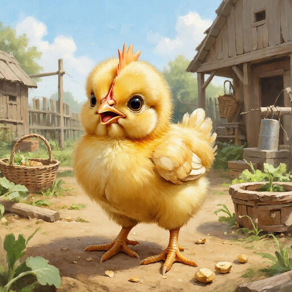 А курочки – цыплят зовут. "Кукареку!" – петух поёт.