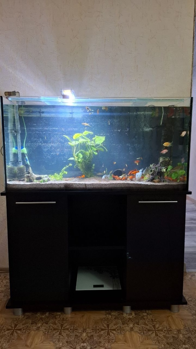 Наши выходные выдались активными. Как и планировали ранее, мы перевезли аквариум из квартиры и заново его запустили. Весь день потратили на организацию места и аквариума😀 Весь старый грунт выкинули, помыли аквариум, засыпали новый грунт и посадили растения. Грунт заказывали на Маркетплайсе (20 кг пропана). Выглядит аквариум с этим грунтом лучше. Сложнее всего было выловить рыбок и пересадить их в большой контейнер. Все это вы сможете увидеть в ближайшее время в видео😀