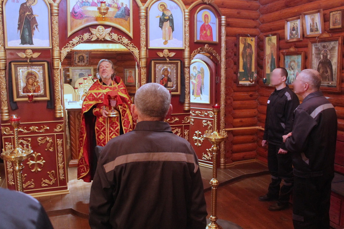 Батюшка совершил Божественную Литургию и Таинство Исповеди в храме, расположенном на территории учреждения. За богослужением молились осужденные, исповедующие Православие.