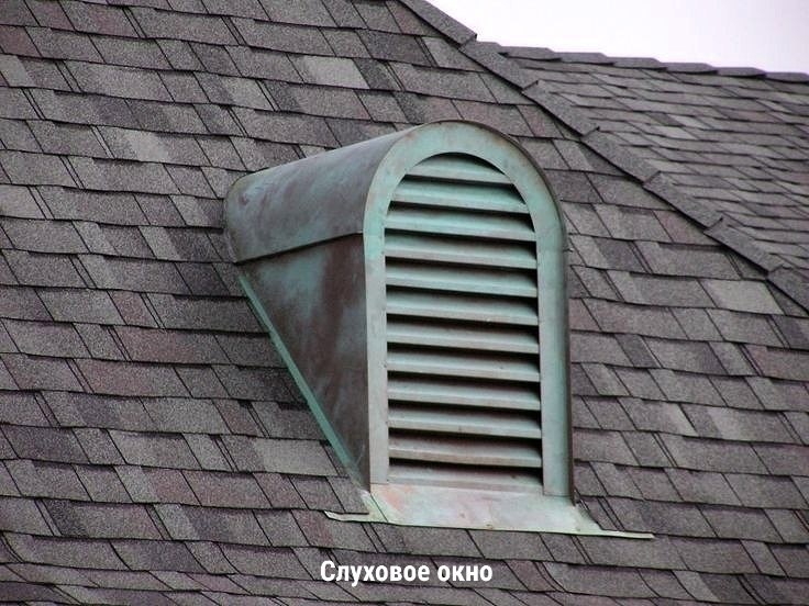 Слуховое окно — это проём в скате крыши для проветривания и освещения чердака. Иногда через него делают аварийный выход на кровлю, но главное это вентиляция холодных чердаков. Обычно если чердак отапливаемый и жилой, в новых зданиях устанавливают уже остеклённые мансардные окна (аля Velux), а жалюзийные решётки встречаются только на холодных крышах.