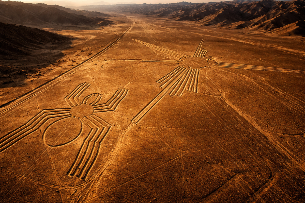 Представь: ты создаёшь гигантский рисунок, который сам никогда не сможешь увидеть целиком. Зачем? Они видны только с неба. Их нельзя увидеть с земли. И никто до сих пор не знает, зачем их сделали. 1920 - 30-е годы. Перу. Самолёты только начинают регулярно летать над пустыней. Пилоты смотрят вниз и не верят своим глазам. Под ними идеально ровные линии. Огромные фигуры. Геометрия, которую невозможно оценить с земли. Так мир впервые по-настоящему увидел Линии Наска. И вот тут начинается самое интересное. Если ты стоишь на земле - ты видишь почти ничего. Просто камни. Пыль. Пустыня. Но стоит подняться в воздух, и перед тобой раскрывается гигантская "картина". Что там можно увидеть: И главный вопрос: кто это сделал - и для кого? Вот что делает эту историю по-настоящему странной. И самое тревожное: Их невозможно увидеть целиком, находясь внутри них. Представь это ещё раз. Ты создаёшь гигантский рисунок, который сам никогда не сможешь увидеть. Зачем? Самая "классическая" гипотеза звучит разум