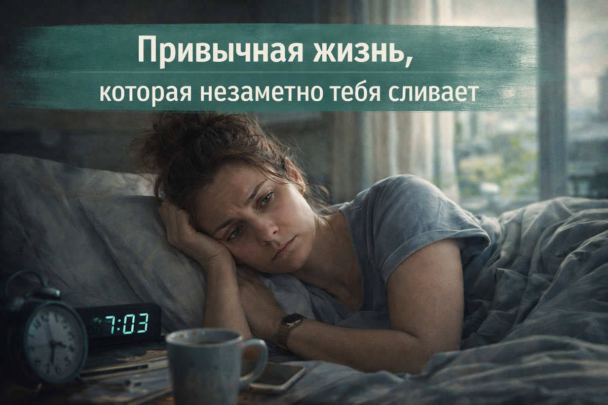 Это редко выглядит как катастрофа. Обычно всё намного тише. Ты просто живёшь «как все»: просыпаешься, делаешь обязательное, устаёшь, чуть-чуть отвлекаешься, обещаешь себе собраться и снова проживаешь день так, будто он черновик. И именно поэтому это так трудно заметить. Потому что тебя не ломает резко. Тебя понемногу съедает привычное. Человек вообще быстро привыкает даже к тому, что его разрушает. К вечной усталости. К нехватке денег. К тому, что нет внутреннего огня. К состоянию, где ты вроде функционируешь, но по-настоящему не чувствуешь, что живёшь в полную силу. Сначала тебе это не нравится. Потом ты начинаешь это объяснять. Потом привыкаешь. А потом уже защищаешь свою клетку, потому что она хотя бы знакомая. Вот так и работает привычная жизнь: она не приходит с табличкой «я сейчас тебя солью». Она приходит как комфортный сценарий, в котором всё предсказуемо, а значит, не так страшно. Только цена у этого «не страшно» часто одна — твои годы. Самое неприятное здесь то, что внешне вс