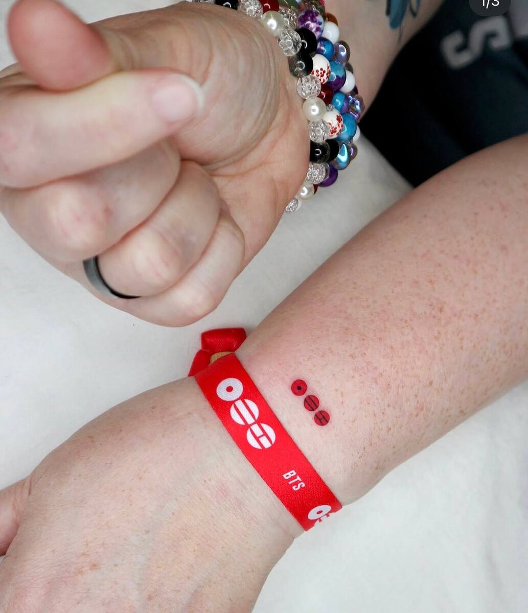 ❤️🔥 Она сделала татуировку со штампом концерта! Я всегда вам благодарен, и надеюсь, что когда вы будете смотреть на эту татуировку, ваш вчерашний день станет незабываемым воспоминанием на всю жизнь. #BTS #ARMY @bts_purple_ocean_news