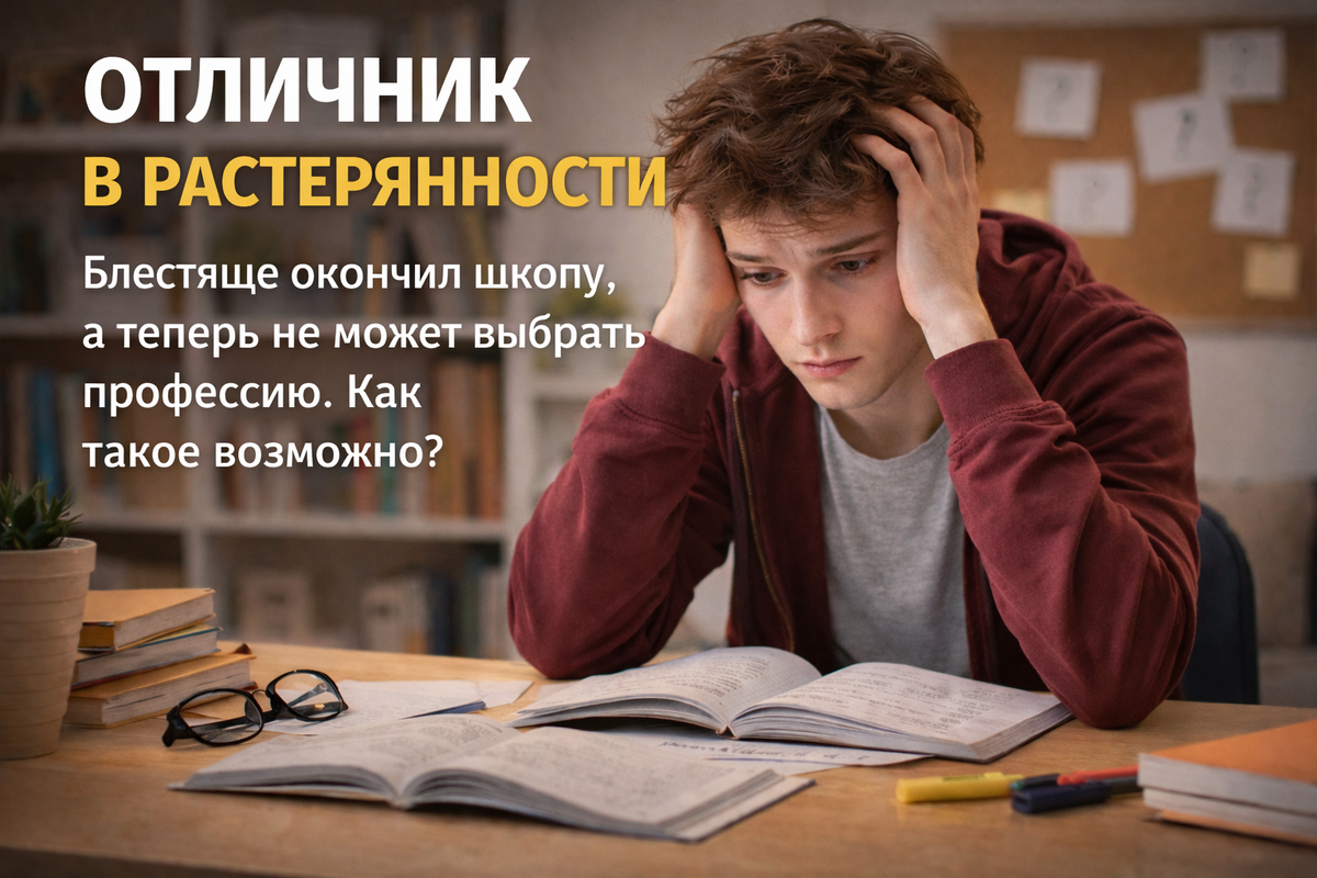 Растерянность отличника после школы — это не крах и не признак того, что потенциал куда-то испарился. Это столкновение с новой системой, правила которой нужно осваивать с нуля. И здесь важно не давить требованием «определись наконец», а помочь изменить саму логику поиска.