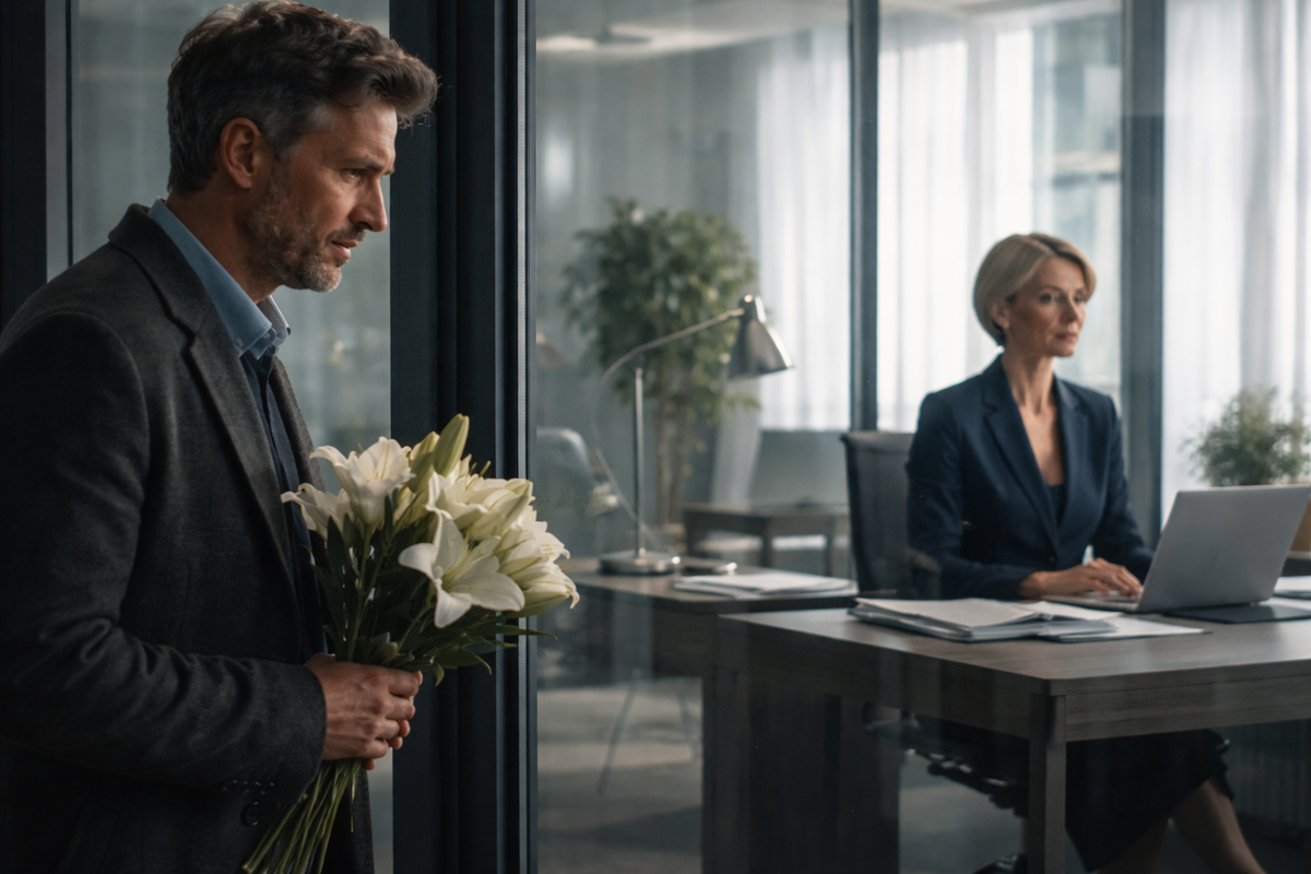 В бухгалтерское бюро “Баланс+” Сергей приехал с букетом белых лилий и заготовленной улыбкой человека, который “всё понял”.
