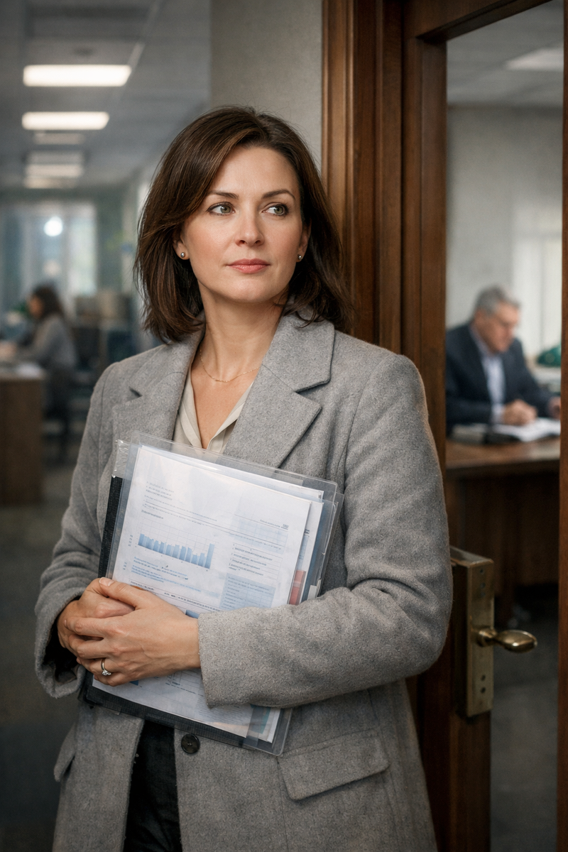 В 11:27 я стояла у кабинета начальника с папкой в руках. Изнутри доносились голоса. Сердце колотилось так, что, казалось, его слышно в коридоре.