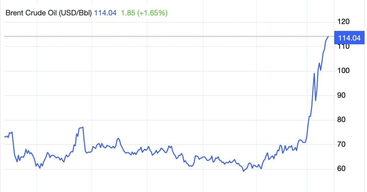 ❗️ BRENT OIL SPIKES TO $114 PER BARREL — HIGHEST LEVEL IN 4 YEARS