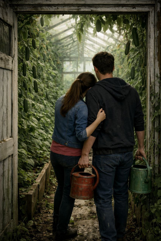 С двумя полными лейками в руках Костя переступил порог теплицы и остановился, принюхиваясь и глядя по сторонам. Оксана вошла следом и обняла его сзади. Их встретило тепло и плотный запах земли.