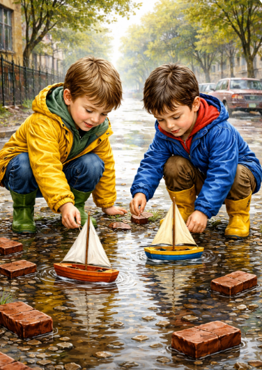 Главная игра — это «кирпичные острова». На пустыре, где когда-то стоял дом, остались груды битого кирпича. Для взрослого это мусор, строительный лом. Для мальчишки — это архипелаг. Кирпичи — это земля. Щебень — это песок пустынь. Лужи между кучами — это проливы и океаны.