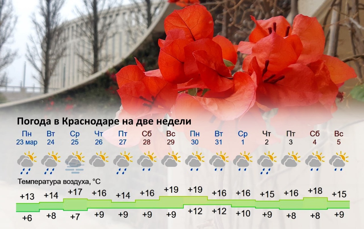 🌧 Прогноз погоды в Краснодаре на две недели с 23 марта по 5 апреля