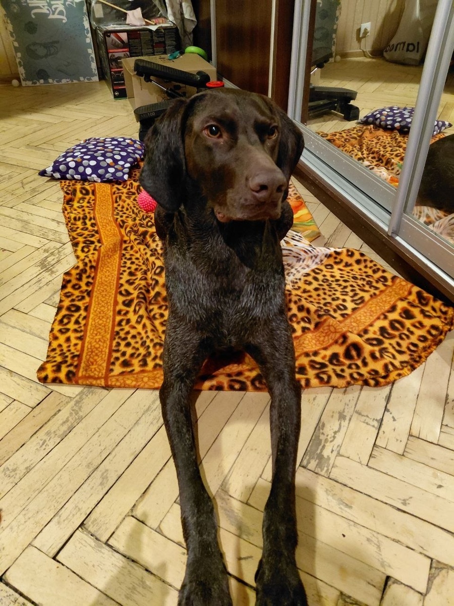 Найдена собака, мальчик, курцхаар, сегодня, 21.03.26 около дома Хабаровская, 19к1. Хозяин, отзовись!