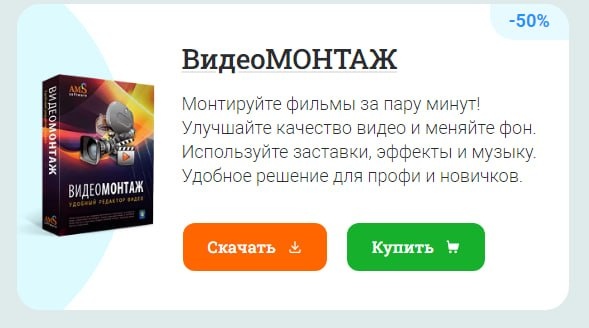 , эффекты Запись роликов на DVD, в Full HD, загрузка на YouTube Подробнее: https://amssoft.ru/videomontage/ © AMS Software скачать