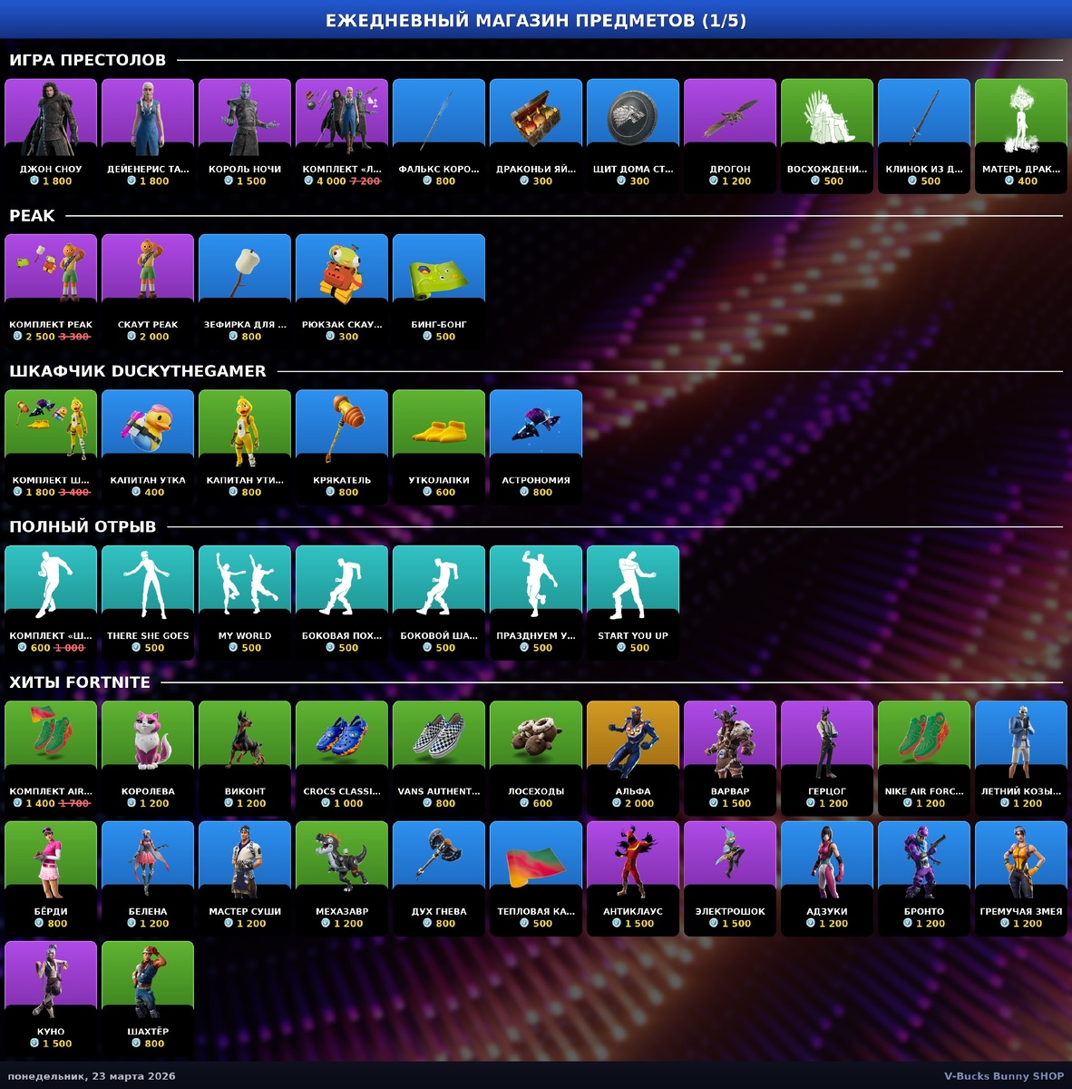 💜 Магазин Fortnite понедельник, 23 марта 2026