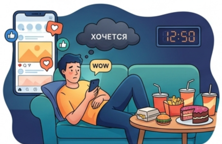Вы приходите домой уставшим, падаете на диван, включаете сериал и заказываете фастфуд. Мозг получает дофамин: вкусно, легко, расслабленно. Вы делаете то что хочется сейчас. Проходит три часа. Сериал закончен, еда съедена, но на душе — тяжесть и чувство, что день прошел зря. Вы ложитесь спать с мыслью: «Ну ничего, начну новую жизнь с понедельника».