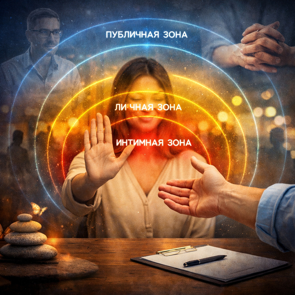 В рамках рубрики «Гипнотерапия: просто о глубоком» я хочу поговорить о фундаментальных основах нашего взаимодействия — проксемике (дистанция) и такесике (прикосновения). Это не просто теория общения, это карта вашей безопасности.
