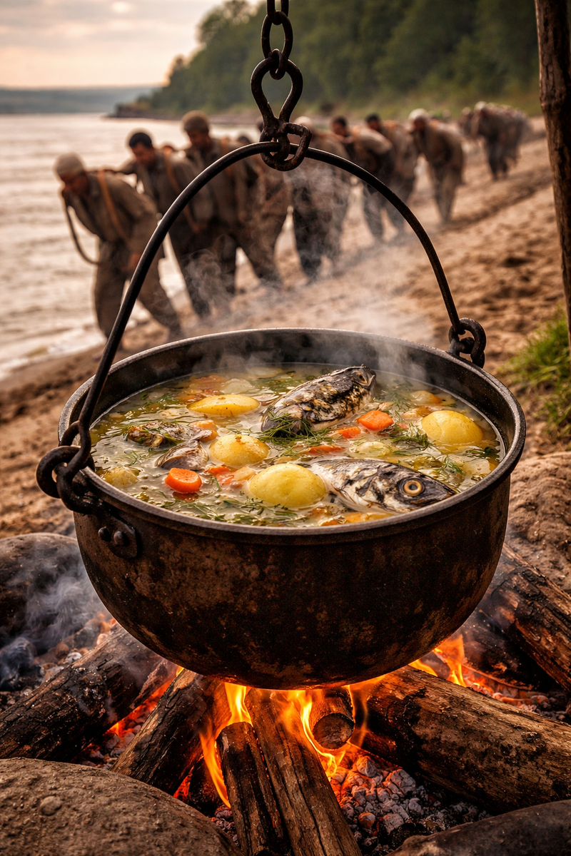 За картиной Репина, за лямками и натруженными спинами — ещё и этот невидимый механизм. Котёл, который кипел на берегу каждый вечер. Кашевар, который делил хлеб ровно. Ложка, которая была личной собственностью в мире, где почти ничего личного не было.