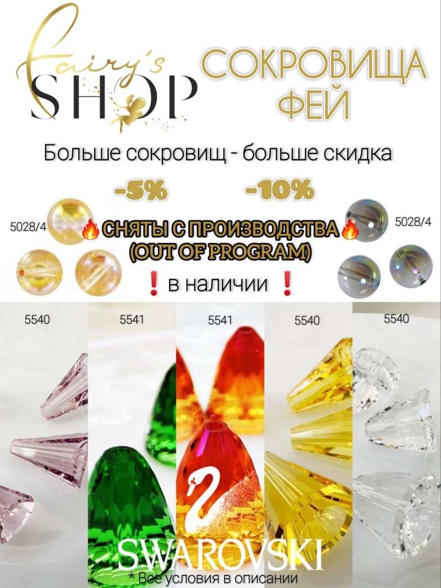 ! 🤗 Волшебницы, всех с началом новой недели. В Сибирь приходит весна, а с ней и новая порция роскошных редкостей по невероятно приятным ценам! 🛍️Присоединиться к Совместной Закупке И напоминаем, в обновленной версии рубрики сокровища ещё ценнее, а скидок больше! 🔥 🤩Лоты дня - чудесные бусины Swarovski 5028/4, 5540, 5541 🤩 🔥 Все артикулы ❗️СНЯТЫ С ПРОИЗВОДСТВА❗️(OUT OF PROGRAM) ⚡Все в наличии! На остатках (и в Австрии, и у нас) мизер - повезёт САМЫМ ШУСТРЫМ!😉 ⚜️Артикул 5541 15 мм, Astral pink. Цена 730₽/шт. ⭐ -5% при покупке от 2 штук - 693,5/шт.❗️ ⭐ -10% при покупке от 4 штук - 657₽/шт.❗️ Остаток - 21 шт. ⚜️Артикул 5541 15 мм, Fern green. Цена 730₽/шт. ⭐ -5% при покупке от 2 штук - 693,5/шт.❗️ ⭐️ -10% при покупке от 4 штук - 657₽/шт.❗️ Остаток - 18 шт. ⚜️Артикул 5541 15 мм, Crystal. Цена 700₽/шт. ⭐ -5% при покупке от 2 штук - 665₽/шт.❗️ ⭐️ -10% при покупке от 4 штук - 630₽/шт.❗️ Остаток - 28 шт. ⚜️Артикул 5540 17 мм light topaz. Цена 378₽/шт. ⭐ -5% при покупке от 2 шт