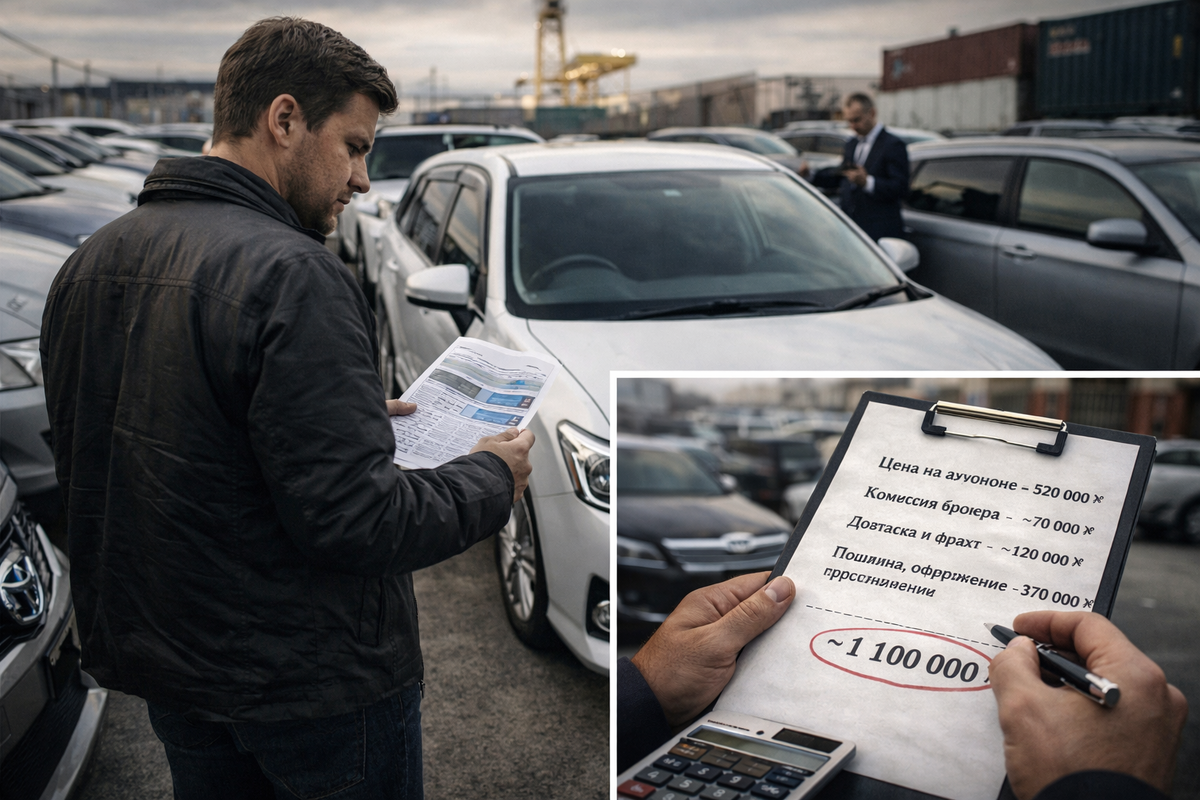 Самая частая история, которую я вижу — человек находит вариант в Японии, смотрит цену на аукционе и думает: «О, возьму за 900 тысяч под ключ». И уже мысленно катается. А потом начинается реальность. Недавно был клиент — хотел Toyota Corolla Fielder. Нормальный, живой вариант на аукционе ушёл за 780 000 йен. По курсу на тот момент — около 520 000 рублей. Он мне пишет: «Ну значит до миллиона встанет, правильно?» Не совсем. Считаем по-человечески. Аукционная цена — 520 000 ₽