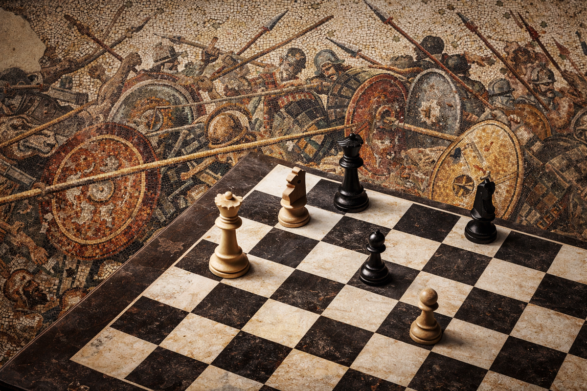 Пример из античности хорошо это иллюстрирует. Фиванский полководец Эпаминонд разработал новую тактику построения и в 371 году до нашей эры разгромил спартанскую фалангу при Левктрах — ту самую, которая считалась непобедимой почти два столетия. Через тридцать три года македонская фаланга уничтожила фиванское построение при Херонее. Ещё через полтора столетия римские легионы одолели македонцев. Каждый раз побеждала не «лучшая» технология сама по себе, а более эффективное сочетание формации, дисциплины, логистики и командования.