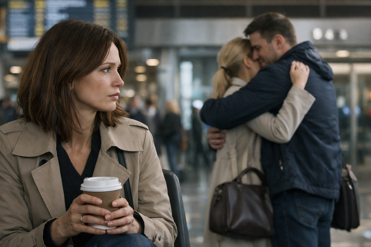 Вокруг кто-то смеялся, бежал ребенок в красной куртке, с потолка лениво лился голос диктора, приглашая пассажиров пройти к ленте выдачи багажа. Все шумело, двигалось, жило своей бесконечной аэропортовой жизнью. А ее мир в этот миг как будто замер, съежился до одной картинки: Семен, его рука у чужой спины, светлое пальто, легкий наклон его головы, слишком теплый для случайности.