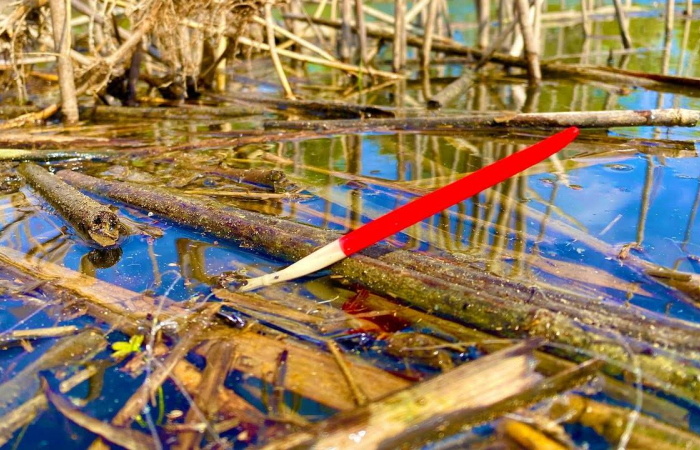 Учитывая, что ловля часто ведётся на относительно небольших глубинах (1-3 метра) и со слабым течением, общая масса оснастки редко превышает 2.5 грамма. Для сравнения, летом на той же реке в проводку я могу использовать оснастки от 5 до 8 граммов. Соответственно, и поплавки выбираются более изящные: с тонким телом в форме веретена или палочки, с не слишком толстой, но яркой антенной или с хорошо заметной окрашенной вершинкой.