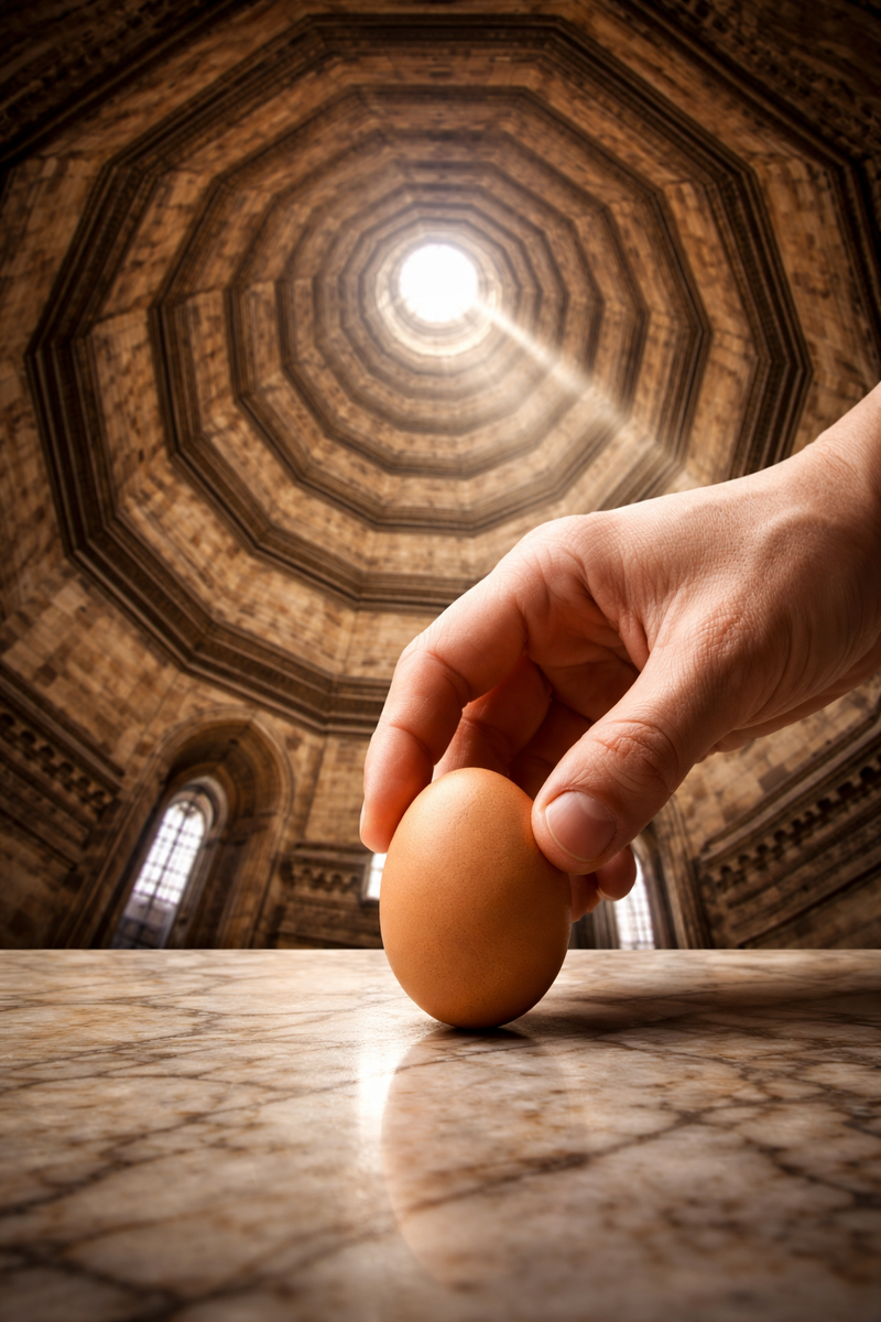 «Тот, кто сможет поставить яйцо вертикально на мраморную плиту, тот и построит купол».