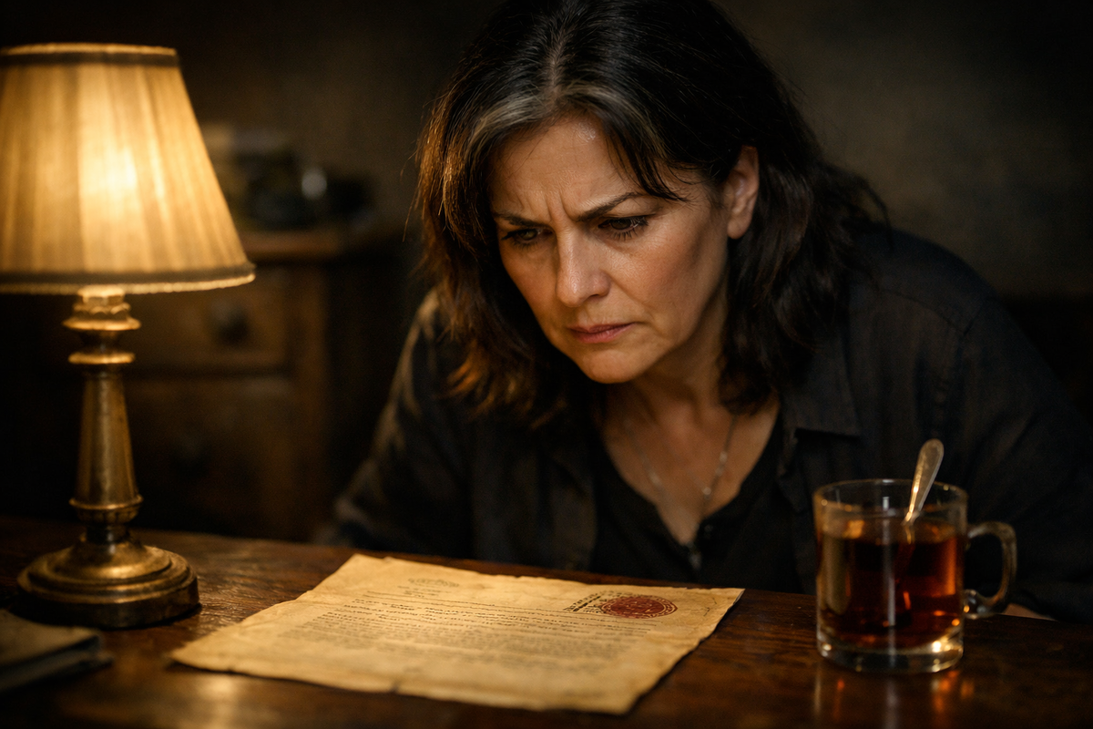 Марина Вячеславовна взяла предоставленную папку и начала листать медленно. Валентина следила за её лицом — ровным, профессиональным — пока не уловила: нотариус задержалась на одном листке чуть дольше, чем на остальных. Взгляд не пошёл дальше сразу — секунда, может две. Потом двинулся. Что-то она увидела. Что-то зацепило.