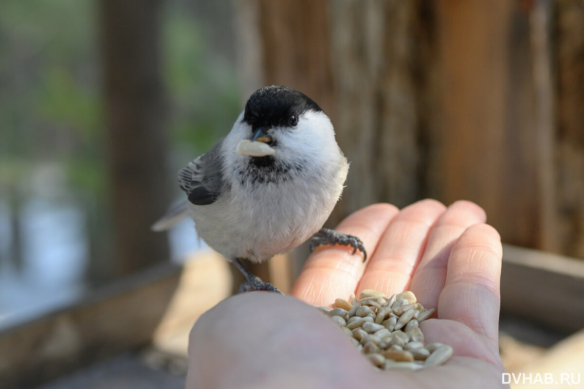 На минувших входных фотографы DVHAB прогулялись по тропе Дерсу в поселке Корфовский и запечатлели обитающих на территории птиц. - Птички уже на входе в лес встречают, щебечут и преследуют по пятам. Они там прикормленные. Надо немного постоять, и они сами начинают садиться на руки, - рассказала фотограф Надежда Барышева. На тропе установлены кормушки для птиц, в которые можно положить семечки. Как рассказала Надежда, в кормушку она положила семечки не обжаренные, а с руки пернатые с удовольствием забирали очищенные. - Птичек здесь много. Поползни гоняют синичек. Уже распустилась верба. А ручьи еще не раскрылись, где-то под снегом журчат, - говорит фотограф. Напомним, что на прошлой неделе отмечался День весеннего равноденствия: длина дня сравнялась с протяженностью ночи. А синоптики отмечали, что именно в это время начинается настоящая, климатическая весна. И, провожая зиму, мы захотели поделиться яркими снежными снимками. Фото Надежды Барышевой, Романа Смолко