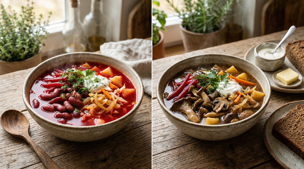 В этом году я решила провести настоящий эксперимент. Не просто сварить постный борщ, а приготовить два варианта в один день, в одинаковых кастрюлях, из одних и тех же базовых овощей — но один с фасолью, а второй с грибами. Хотела раз и навсегда разобраться, какой из них лучше. Забегая вперёд, скажу: однозначного победителя я так и не выбрала, но зато поняла кое-что важное про оба варианта.