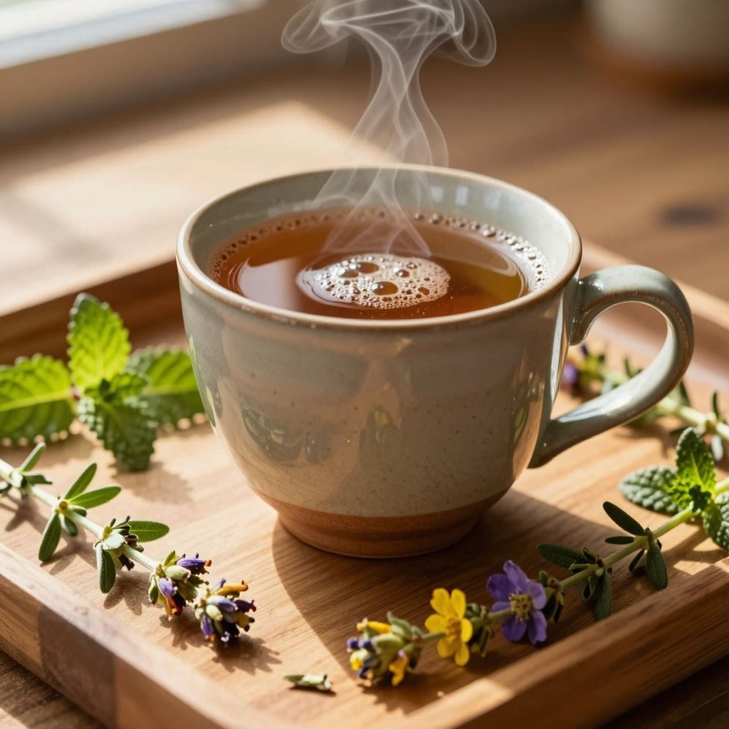 Мята, но не обычная, а так называемая «холодная». Бабушка так ее называла. Мелисса или, как ее еще называют лимонной мятой Лист черной смородины Лист малины Завариваем укутав в полотенце и пьем маленькими глоточками. Восстанавливает силы, особенно после сна.