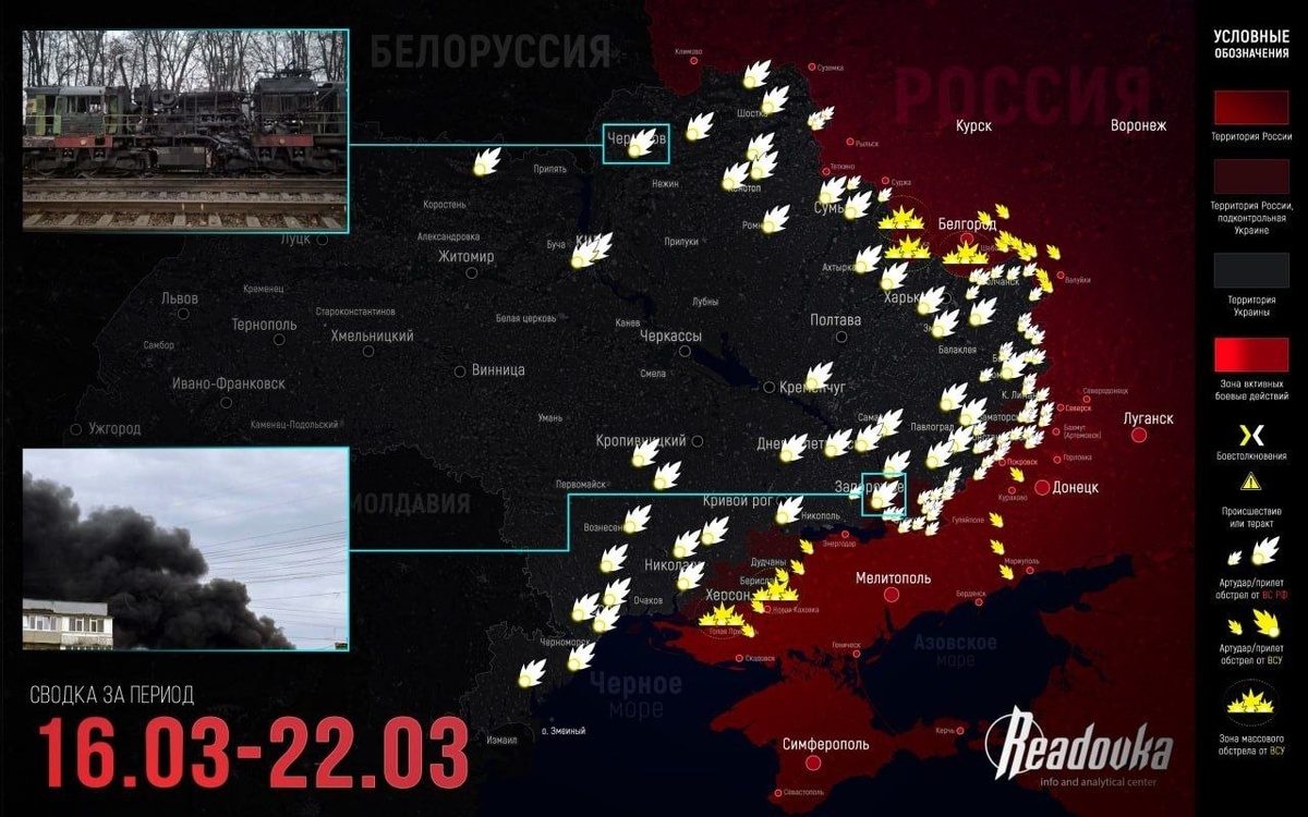 На Запорожском направлении противник методично прощупывает оборону ВС РФ сразу в двух секторах: в треугольнике Доброполье–Варваровка–Ровнополье и западнее Покровска, где заметны признаки сосредоточения десантно-штурмового корпуса ВСУ. Наше командование действует на опережение: части 5-й и 36-й армий атакуют у Рождественского, а 127-я МСД начала штурм Верхней Терсы. Тем временем на Краснолиманском направлении 25-я армия идет в обход через лес к коммуникациям гарнизона ВСУ — до ключевого перекрестка снабжения остается около 1,5 км. В Белицком же противник оказался в полуокружении с трех сторон, асфальтовый путь отступления вот-вот уйдет под огневой контроль ВС РФ. О срыве «торецкого залета» ВСУ под Часовым Яром и ситуации на других направлениях — в недельной сводке Readovka.